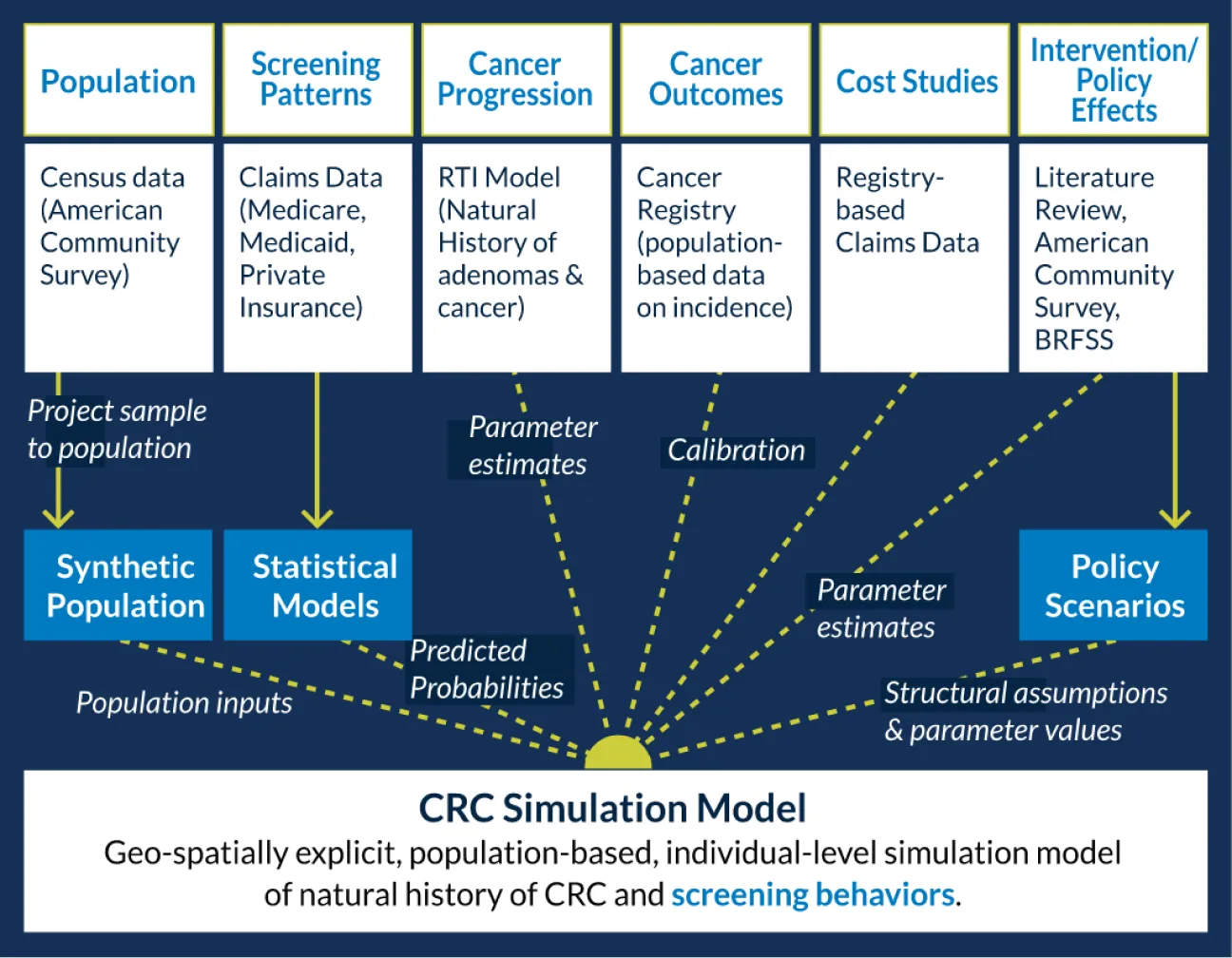 - To estimate the impact of evidence-based interventions and health insurance changes on colorectal cancer screening and outcomes