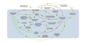 Programs emphasizing colonoscopies see more routine colonoscopies completed. A balancing loop (B2) occurs because colonoscopy preparation and procedure time162 increase patient costs from time lost,163 reducing the likelihood of completion.164 This lowers the number of completed colonoscopies.