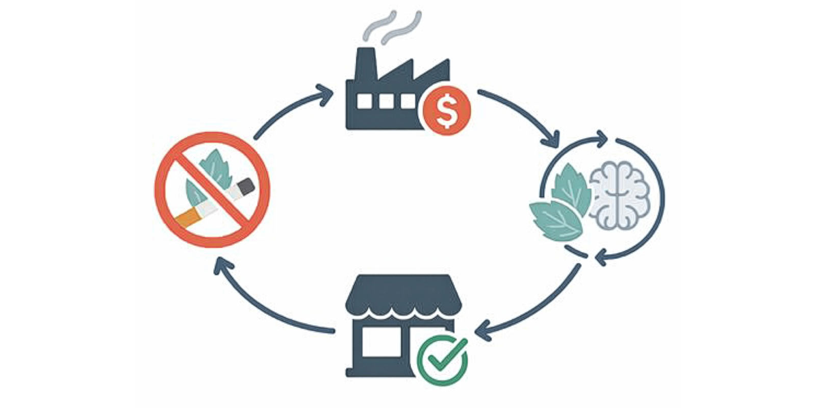 The goal of this study is to synthesize evidence from studies on menthol bans in the form of a causal loop diagram to visualize the impacts of a menthol cigarette ban on tobacco use, as well as the complex factors that may reinforce or mitigate ban effectiveness over time. This causal loop diagram may be used by public health practitioners and policymakers to proactively address factors that may support or limit the intended public health impacts of menthol cigarette bans.